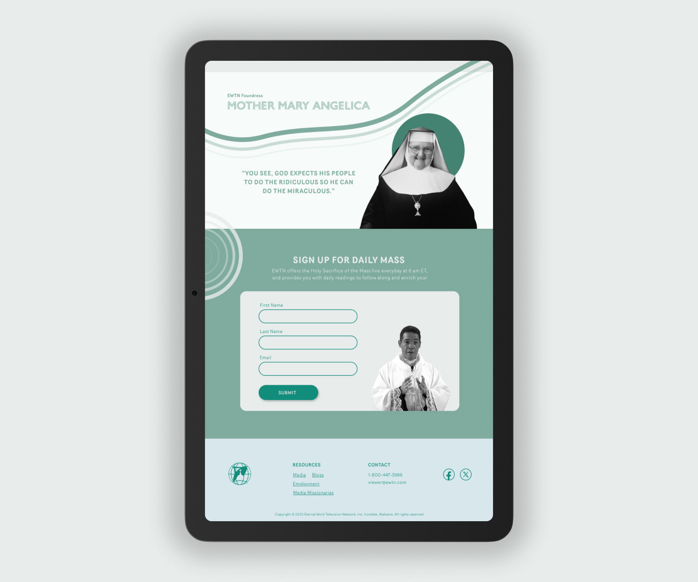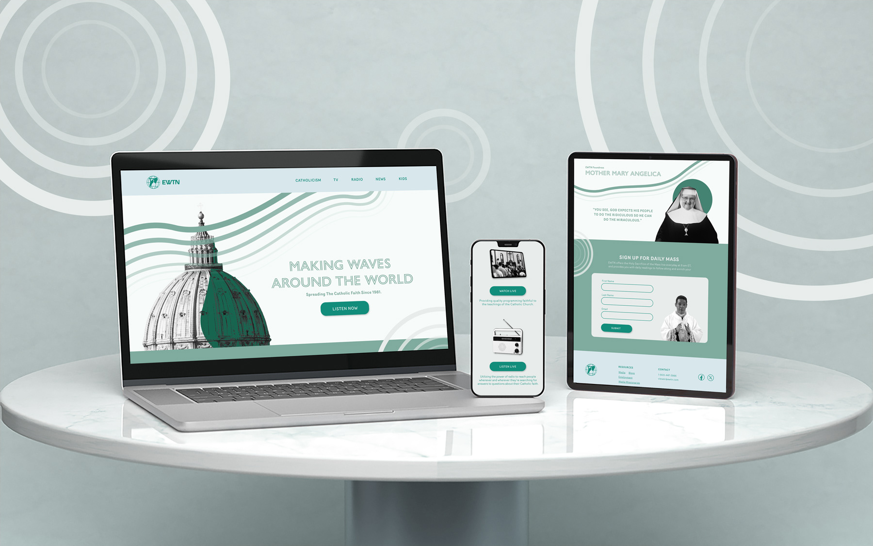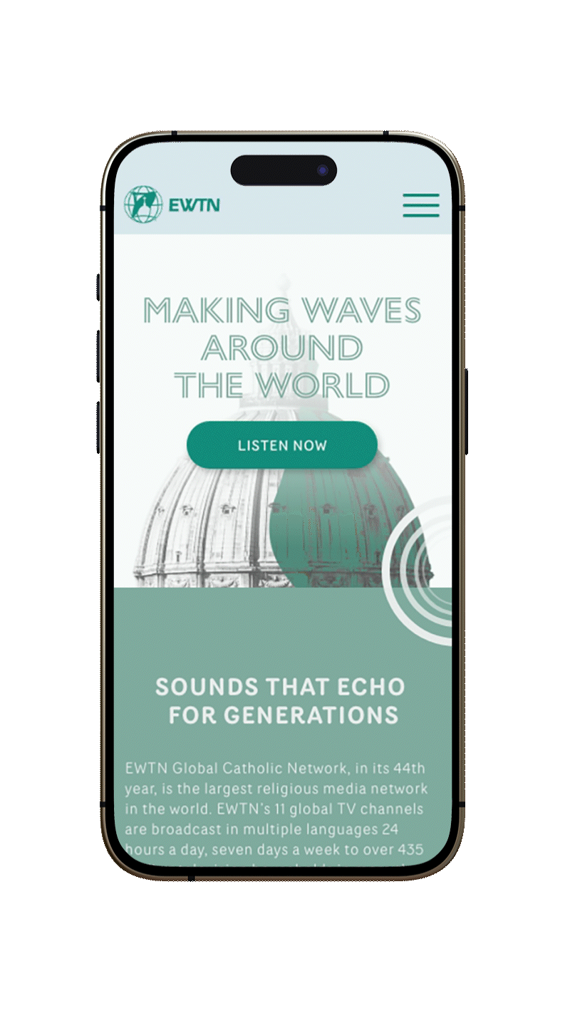 EWTN is a global catholic network that uses multiple mediums to portray their message. Their current site is visually cluttered and lacks the enthusiasm their powerful content requires.